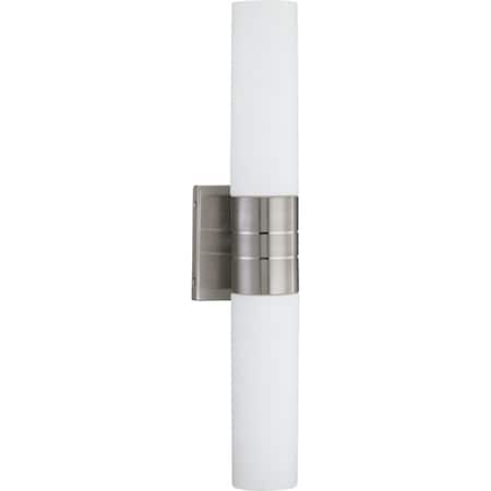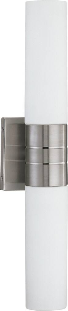 Nuvo 62/2936 Link Lighting Fixture, 2Lt LED Vertical Tube Wall Sconce, White Glass Brushed Nickel Finish