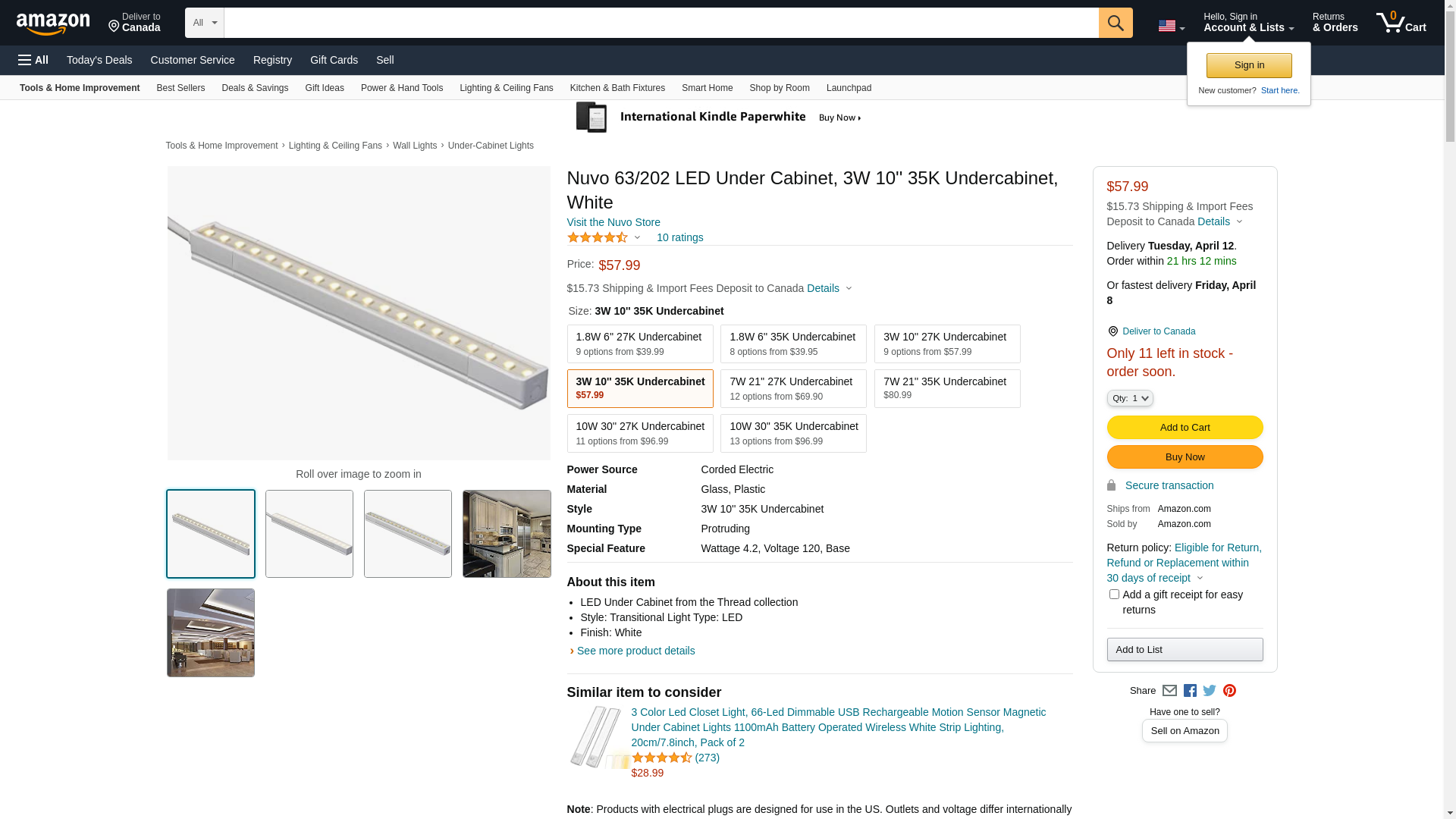 Nuvo 63/202 | Thread - 4.2W LED Under Cabinet/Cove Kit; 10" long; 3500K; 120V - Under Cabinet & Cove - LED - Nuvo - Brands | Topbulb
