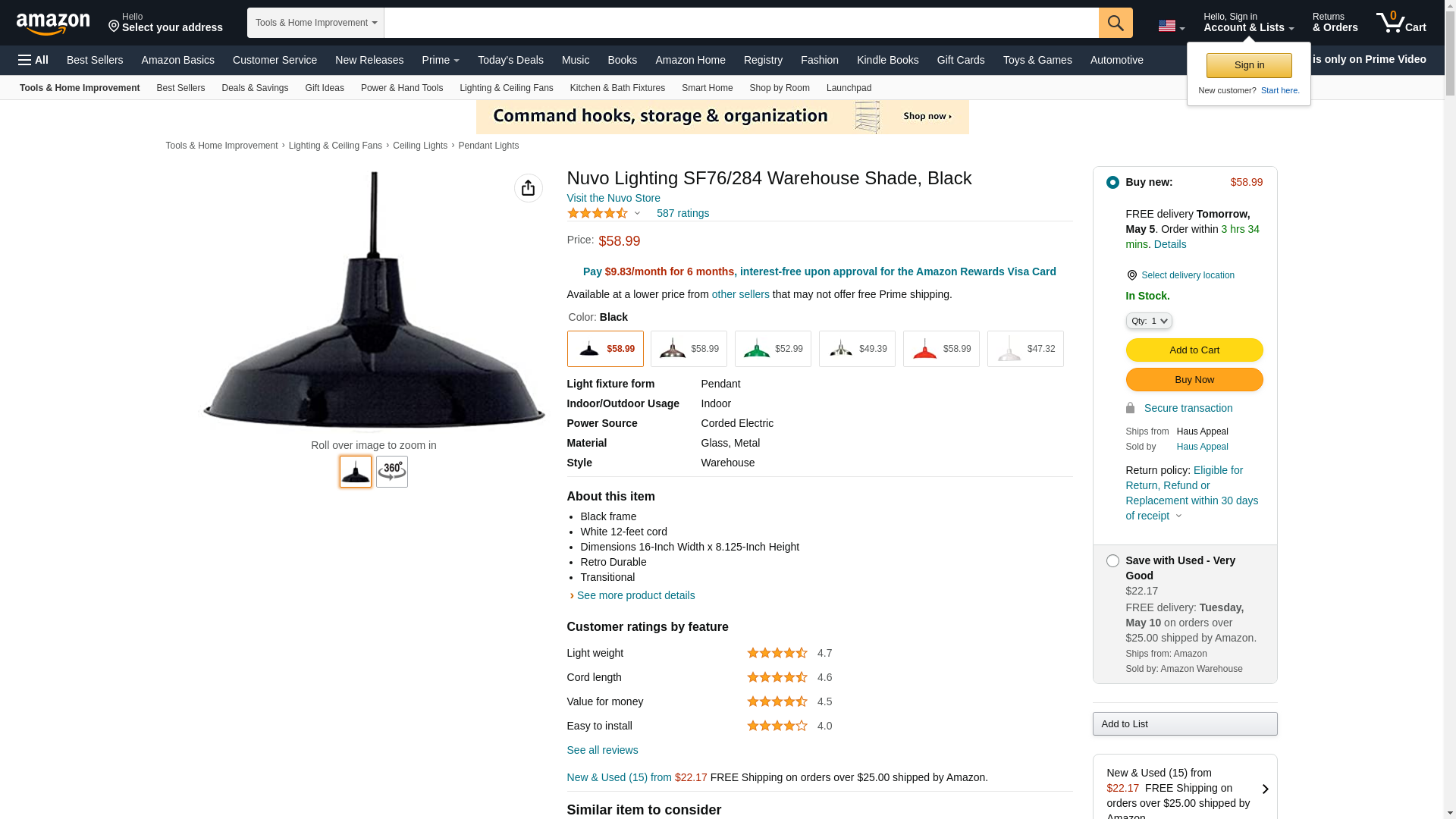Nuvo Lighting SF76/284 Warehouse Shade, Black