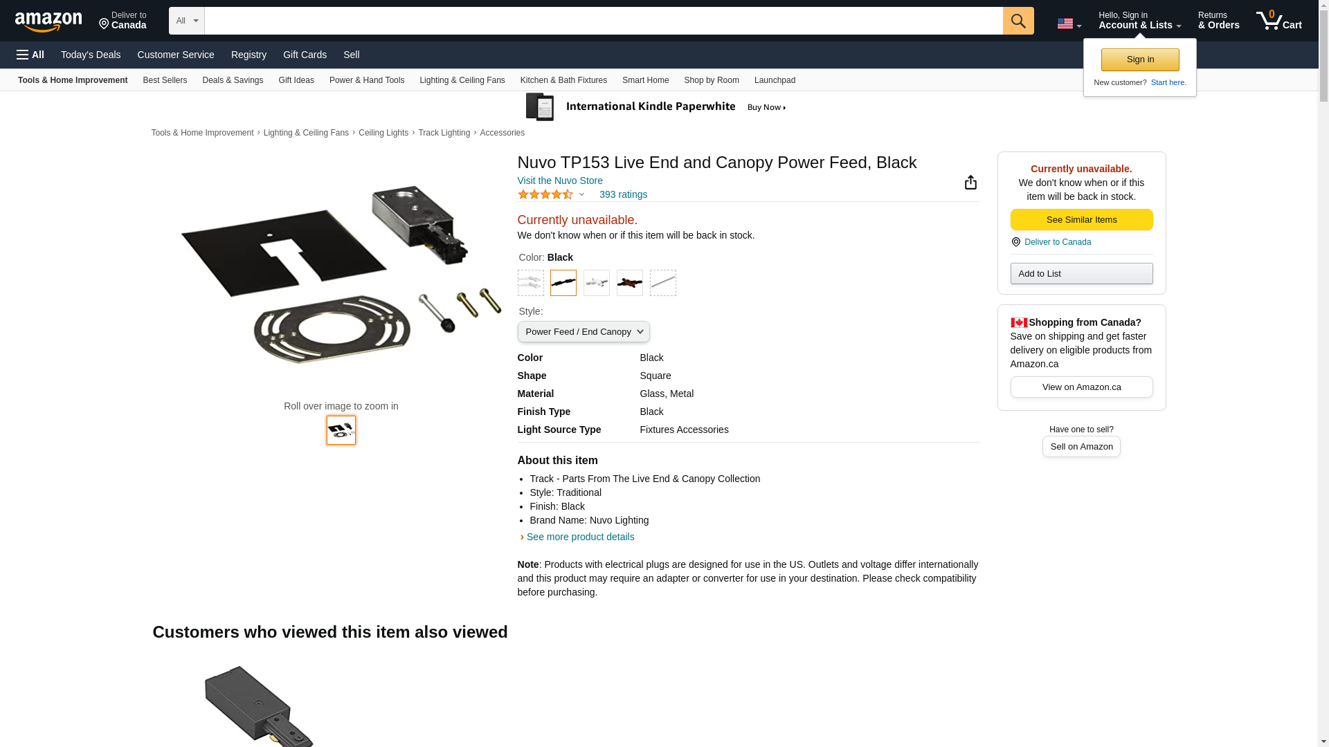 Buy Nuvo TP153 Live End & Canopy, Black on HomElectrical.com. FREE SHIPPING with minimum purchase of $75.