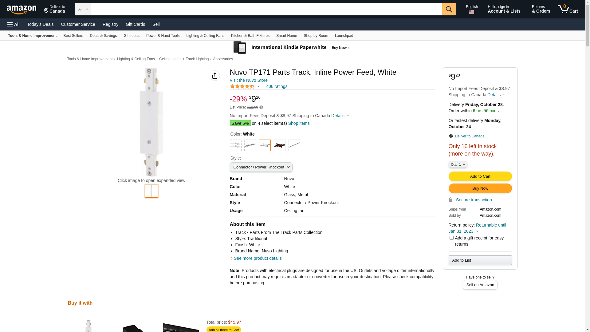 Buy Nuvo TP171 Inline Power Feed for LED Track Lights, White on HomElectrical.com. FREE SHIPPING with minimum purchase of $75.