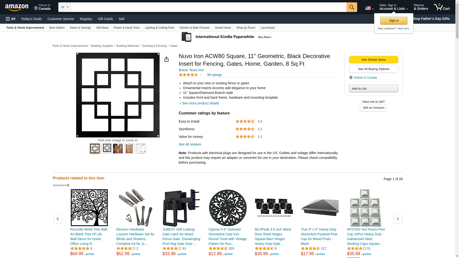 Nuvo Iron ACW80 Square, 11" Geometric, Black Decorative Insert for Fencing, Gates, Home, Garden, 8 Sq Ft