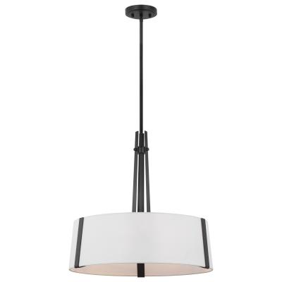 Flynn 3-Light Pendant E26 Base 60w Black Finish White Textile Shade