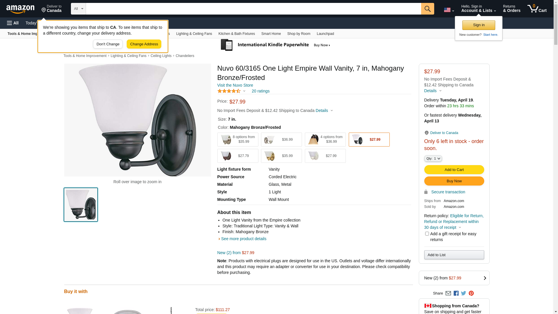 | Feature | One light vanity from the Empire collection |