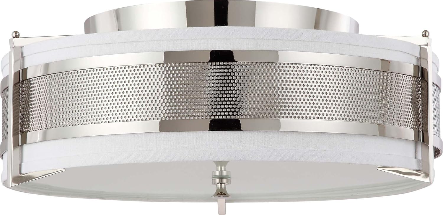Nuvo Lighting 60/4447 Four Light Diesel Large Flush with Slate Gray Fabric Shade/Frosted Diffuser, Polished Nickel