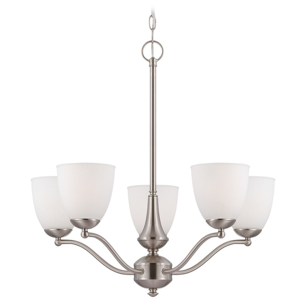Nuvo Lighting 60/5035 Patton Five Light Chandelier 60 Watt A19 Max. Frosted Glass Brushed Nickel Fixture