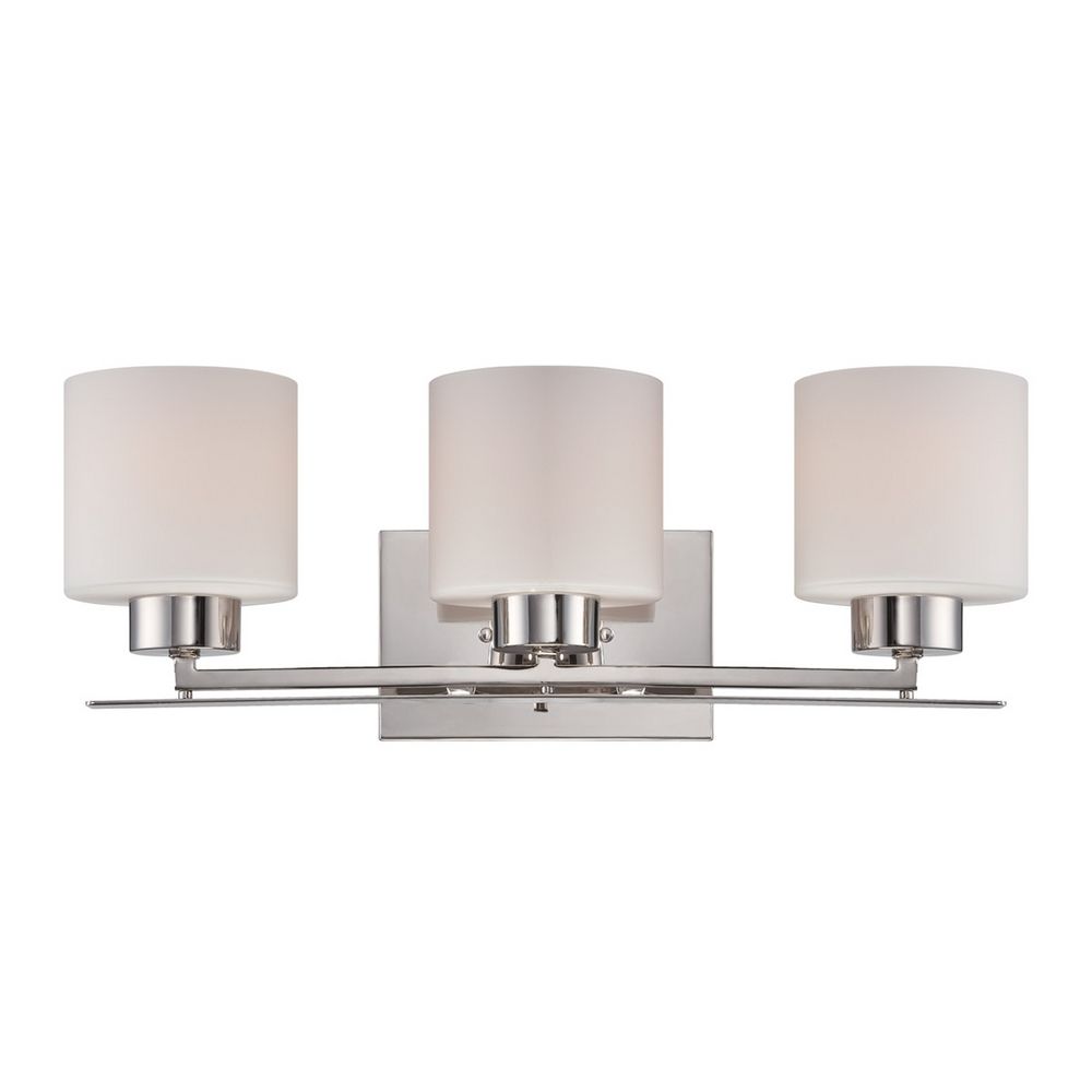 Nuvo Lighting 60/5203 Parallel Three Light Vanity 100 Watt A19 Max. CUL Damp Location Etched Opal Glass Polished Nickel Fixture