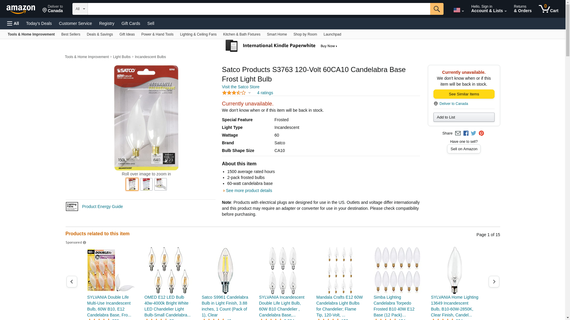 Satco Products S3763 120-Volt 60CA10 Candelabra Base Frost Light Bulb