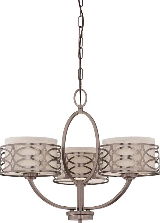 Nuvo Lighting 60/4724 Nuvo Harlow Collection 3-Light Chandelier Hazel Bronze Khaki Fabric Shade Cream Diffuser Light Fixture