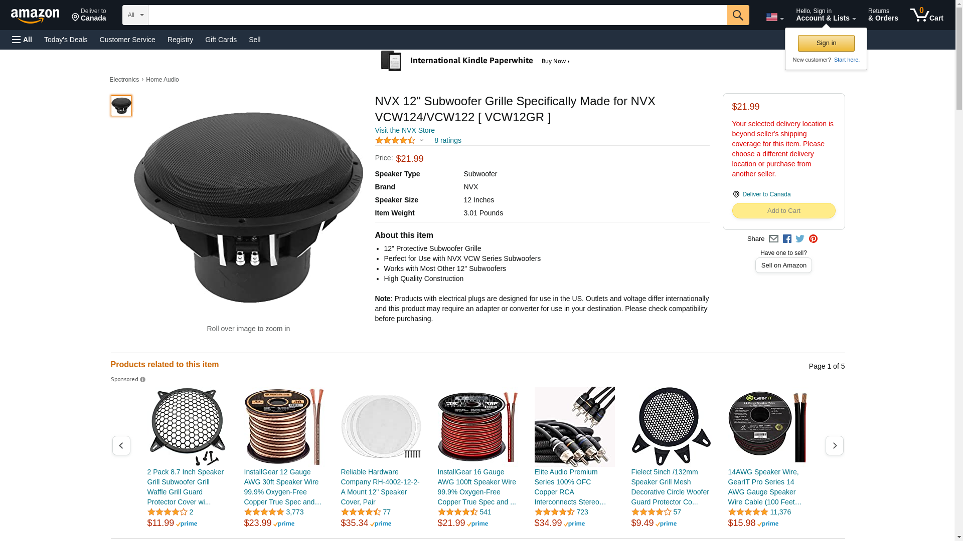 NVX, 12" Subwoofer Grille Specifically Made VCW124/VCW122