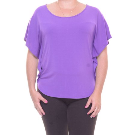 NY Collection Women's Short Sleeve Extended Shoulder Poncho Pullover, Amaranth Purple, X-Large