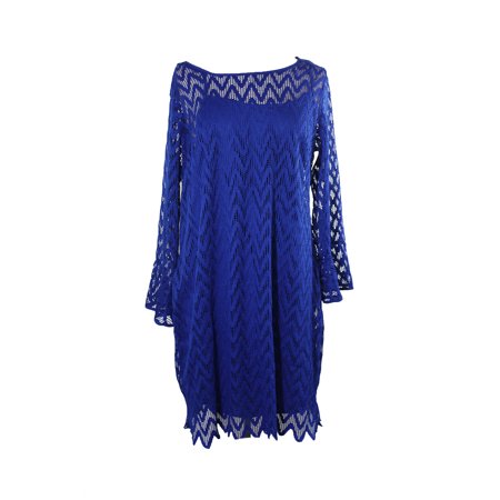 Ny Collection Plus Size Blue Bell-Sleeve Lace Dress 3X