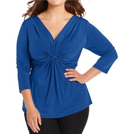 NY Collection Womens Plus Matte Jersey Gathered Pullover Top