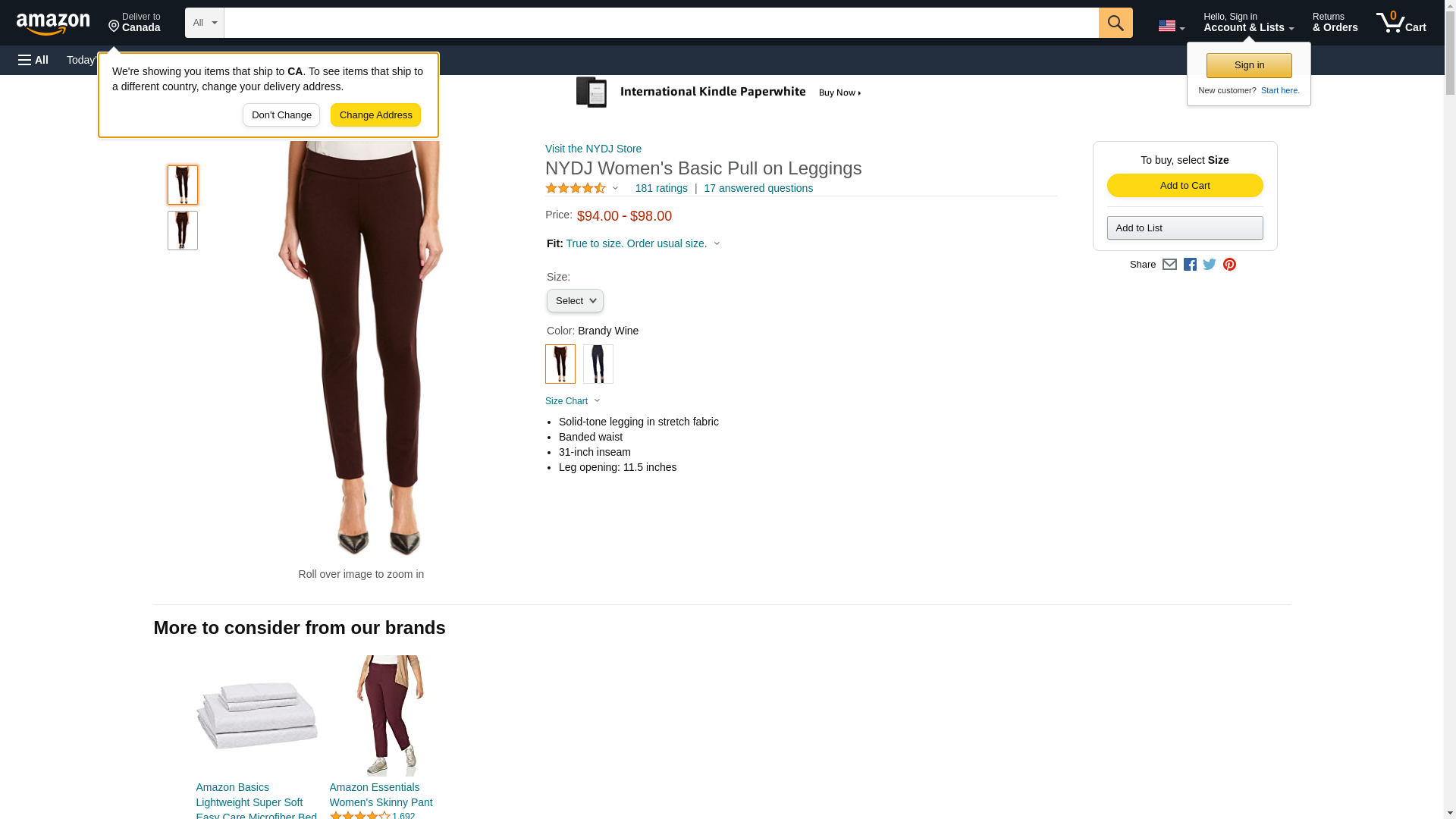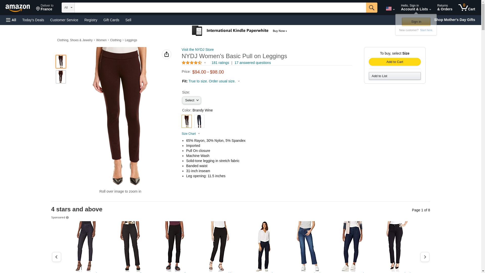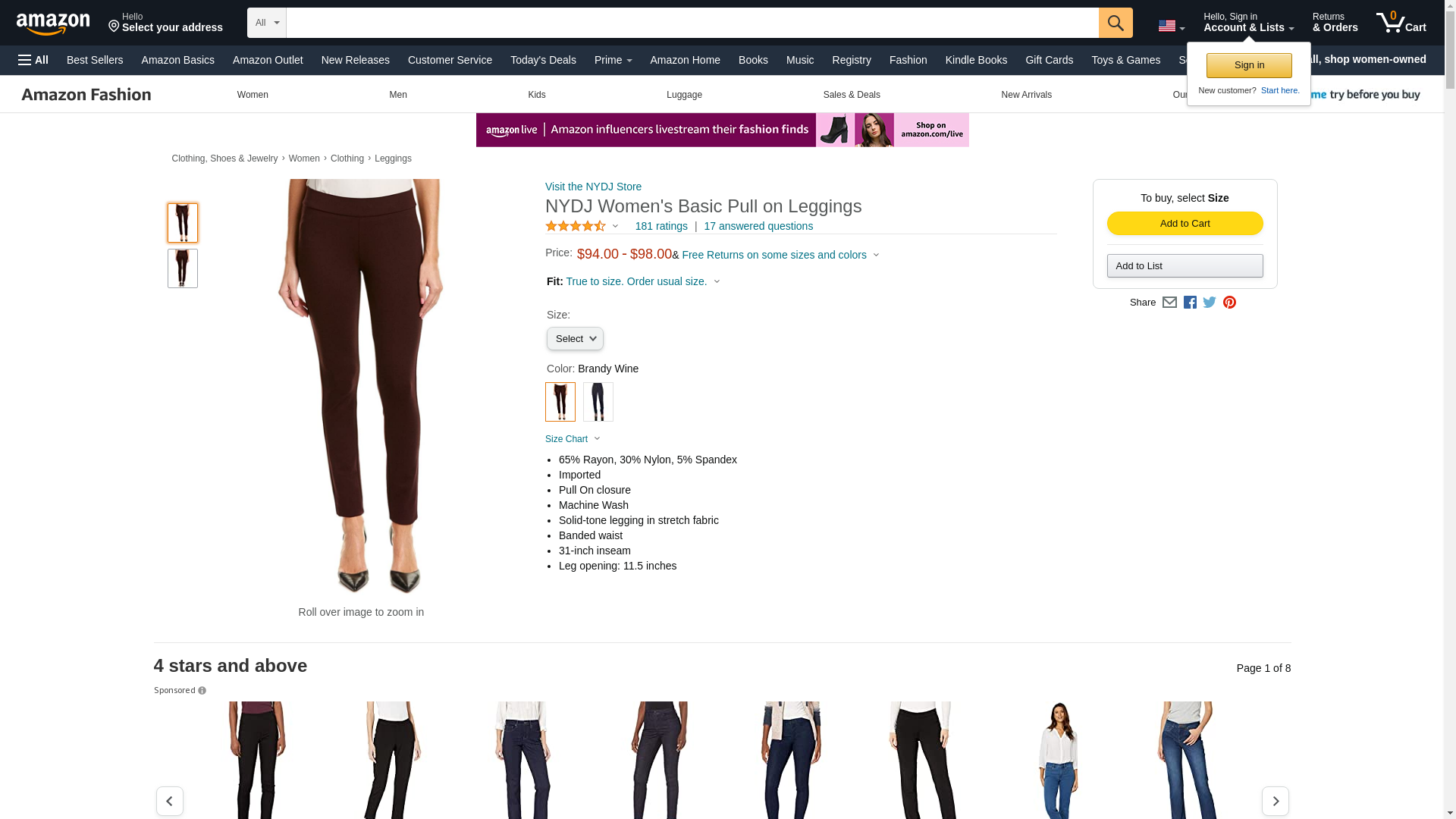 NYDJ Women's Basic Pull On Leggings, Brandy Wine, 2