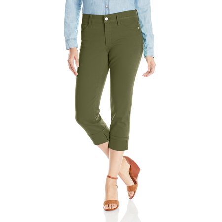 NYDJ NEW Dark Green Womens Size 0 Stretch Wide Cuffed Capri Jeans