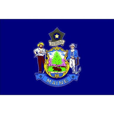 - Price For: Each Legend: Maine Material: Nylon Item: State Flag Style: Graphic Showing Reverse on Back Side, Canvas Header, Grommets Width: 5 ft. Height: 3 ft. Min. Flagpole Height: 20 ft. Indoor/Outdoor: Outdoor Country of Origin (subject to change): United States