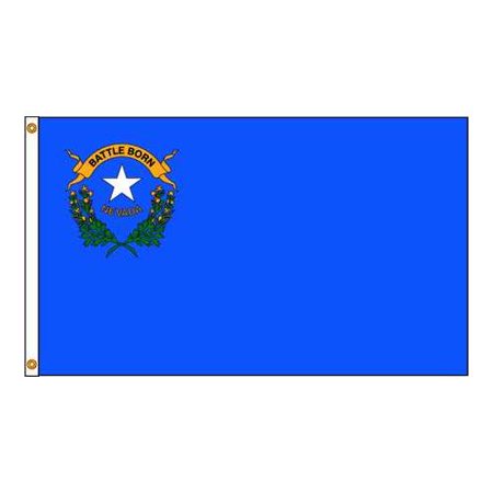 - <b>Price For:</b> Each <b>Legend</b>: Nevada <b>Item</b>: State Flag <b>Material</b>: Nylon <b>Style</b>: Digital Single/Reverse Image, Header and Grommets <b>Indoor/Outdoor</b>: Indoor or Outdoor <b>Width</b>: 8 ft. <b>Height</b>: 5 ft. <b>Min. Flagpole Height</b>: 30 ft. <b>Country of Origin (subject to change)</b>: United States
