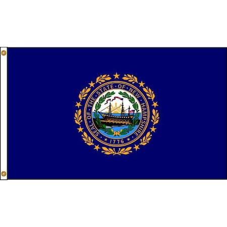 State Flag, New Hampshire, Indoor/Outdoor, Style Digital Single/Reverse Image, Header and Grommets, Height 5 ft, Width 8 ft, Min. Flagpole Height 30 ft, Material Nylon