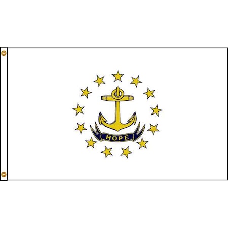 'State Flag, Rhode Island, Indoor, Outdoor, Style Screen Printed, Single/Reverse Image, Header and Grommets, Height 5 ft., Width 8 ft., Min. Flagpole Height 30 ft., Material Nylon'