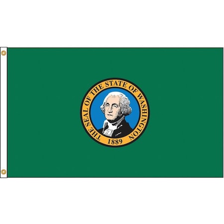 State Flag, Washington, Indoor/Outdoor, Style Header and Grommets, Screen Printed, Single/Reverse Image, Height 5 ft, Width 8 ft, Min. Flagpole Height 30 ft, Material Nylon
