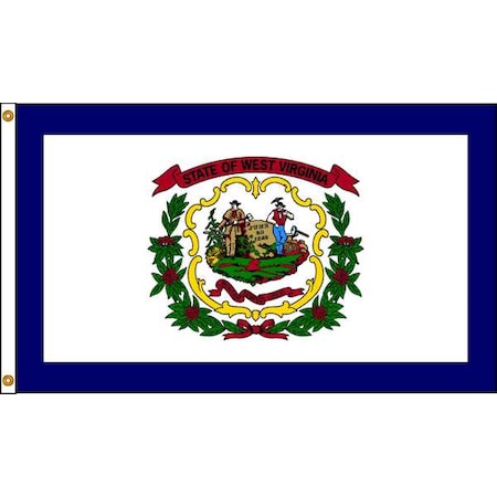 ' State Flag, West Virginia, Indoor/Outdoor, Style Digital Single/Reverse Image, Header and Grommets, Height 5 ft., Width 8 ft., Min. Flagpole Height 30 ft., Material Nylon '