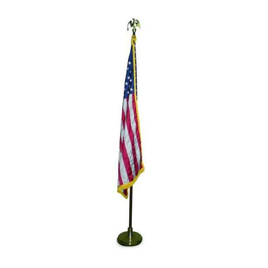 - Price For: Each Indoor/Outdoor: Indoor Material: Nylon Style: Embroidered Stars, Sewn Stripes Includes: Gold Color Cord, Tassel, 2 Piece Oak 8 Ft. Pole, Golden Eagle Ornament and Gold Color Floor Stand Legend: United States Width: 5 ft. Item: US Parade Flag Set Height: 3 ft. Country of Origin (subject to change): United States
