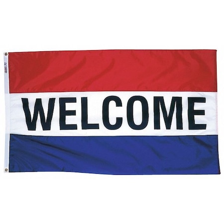 | Feature | <b>Price For:</b> Each <b>Style</b>: Screen Printed, Single/Reverse Image, Header and Grommets <b>Legend</b>: Welcome <b>Height</b>: 3 ft. <b>Item</b>: Message Flag <b>Material</b>: Nylon <b>Width</b>: 5 ft. <b>Min. Flagpole Height</b>: 20 ft. <b>Country of Origin (subject to change)</b>: United States |