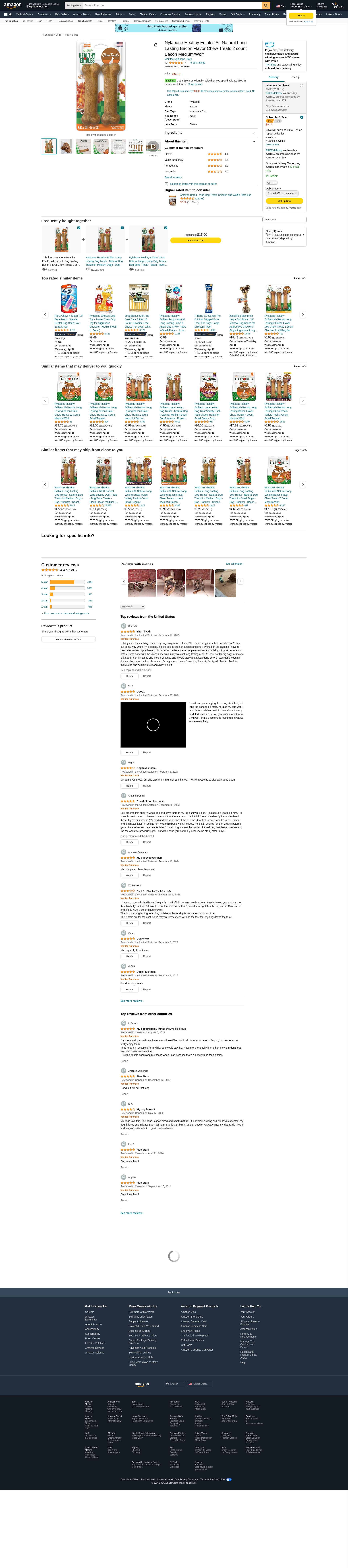 <ul><li>Bacon</li><li>Wolf/2 Pack</li><li>Dog Treats </li><li>Beef By-products, Protein Colloid, Casein, Natural Bacon Flavor, Natural Flavor. Does Not Contain Any Added Salt Or Sugar. Does Not Contain Any Plastic. Fully Consumable And Easily Digested. High In Protein And Low In Fat. Size: Wolf. Package Of 2.</li><li>Nylabone Healthy Edibles Are Tasty, Completely Edible And Digestible Providing A Safe And Enjoyable Alternative To Tradition.</li><li>No Plastic And No Added Sugar.</li></ul><br>All items are brand new, never worn and never used. We guarantee the authenticity of all items.</br>