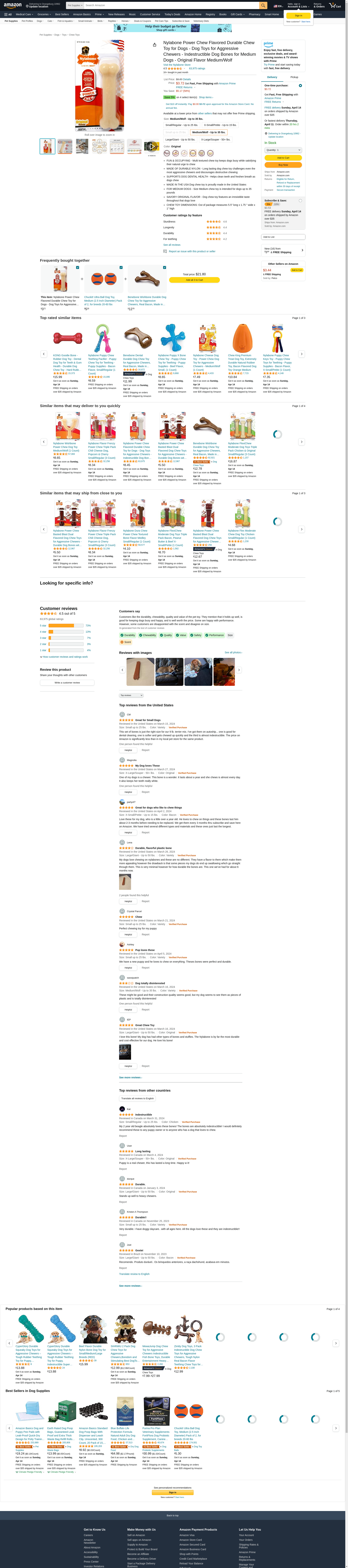 Nylabone Power Chew Flavored Durable Chew Toy for Dogs - Dog Toys for Aggressive Chewers - Indestructible Dog Bones for Medium Dogs - Original Flavor Medium/Wolf