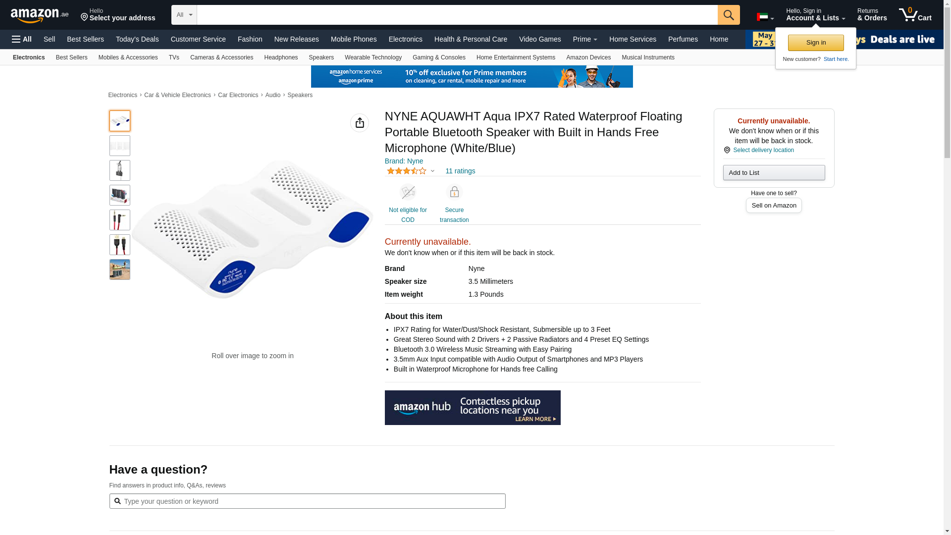 Nyne AQUAWHT Aqua IPX7 Rated Waterproof Floating Portable Bluetooth Speaker with Built in Hands Free Microphone (White/Blue)