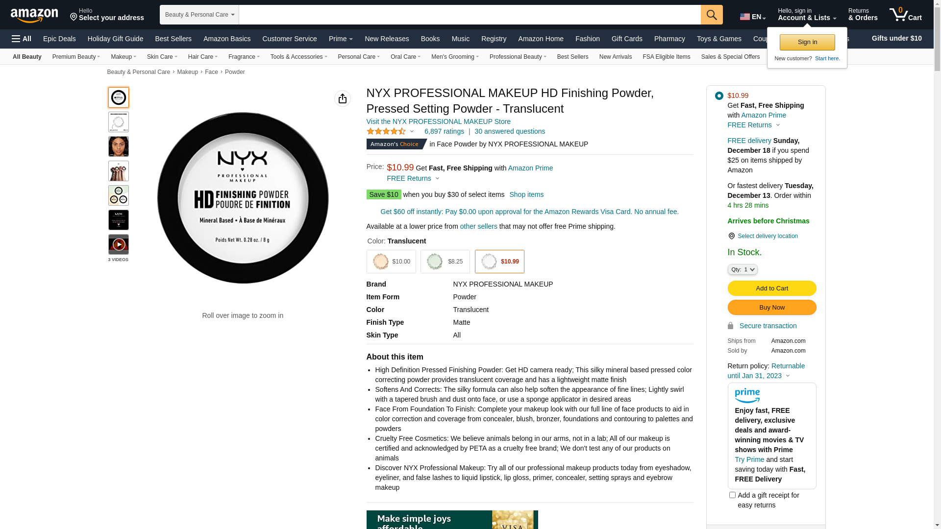 NYX PROFESSIONAL MAKEUP High Definition Powder, Translucent: Maxedbuy.com