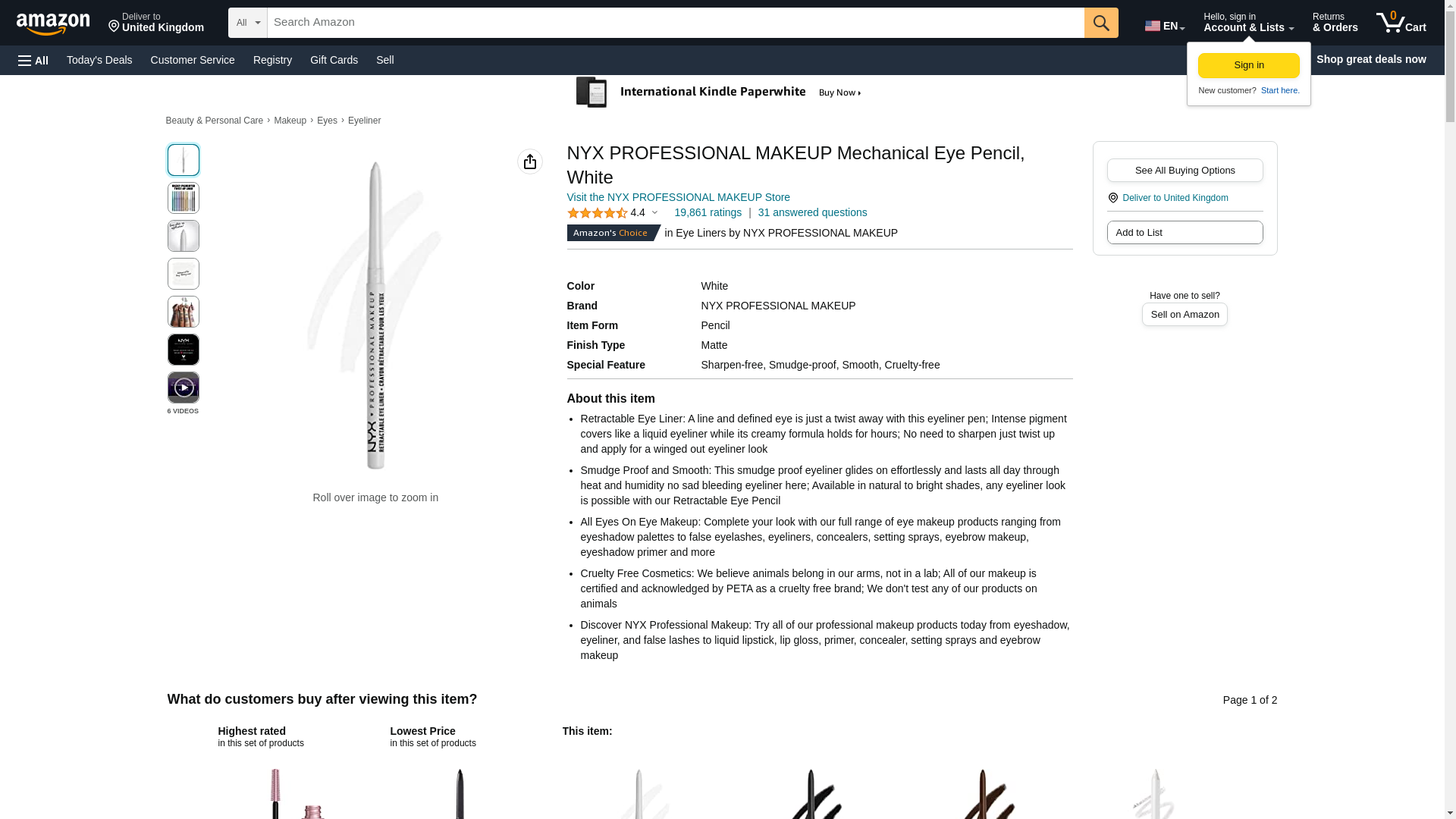 NYX PROFESSIONAL MAKEUP Mechanical Eye Liner Pencil, White: Maxedbuy.com