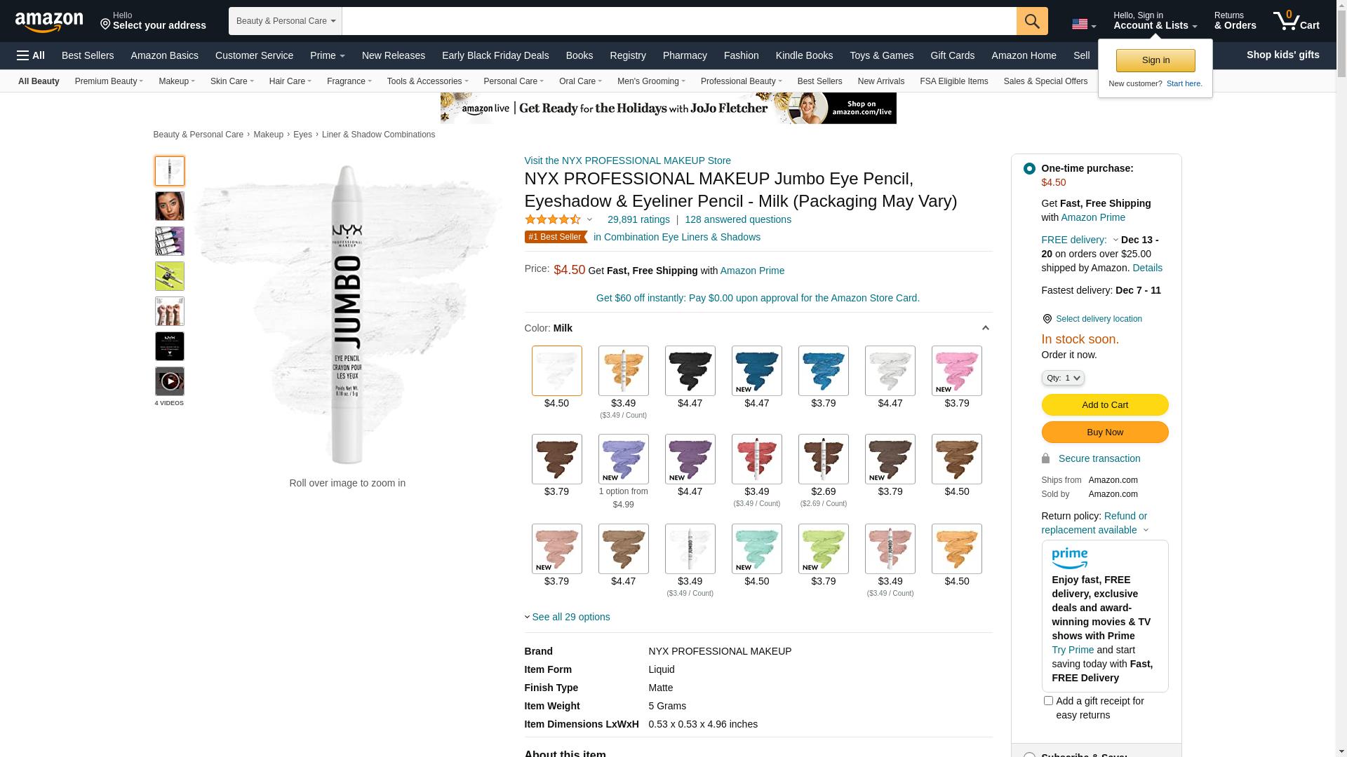 NYX PROFESSIONAL MAKEUP Jumbo Eyeliner Pencil - Milk, White: Maxedbuy.com