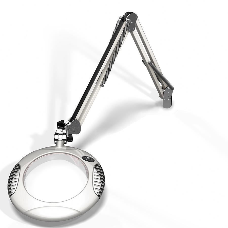 OC White 62400-5-MW 7.5" Round Green-Lite LED Magnifier, Table Edge Clamp, 5 Diop. Medical White