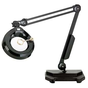 O C White DMSC-5-B-WB Circular Illuminated magnifer, 2.25x magnification, 5 diopters, 10-diopter swing-away lens, from Cole-Parmer