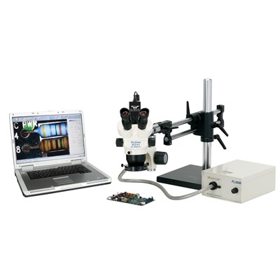 O.C. White TKDPZT-A Pro-Zoom 6.5 Digital Trinocular Zoom Microscope, 10x Eyepieces, 5x-65x Magnification, Halogen Illumination, Adjustable Stand, 120V, Includes 2.0MP Camera and Software