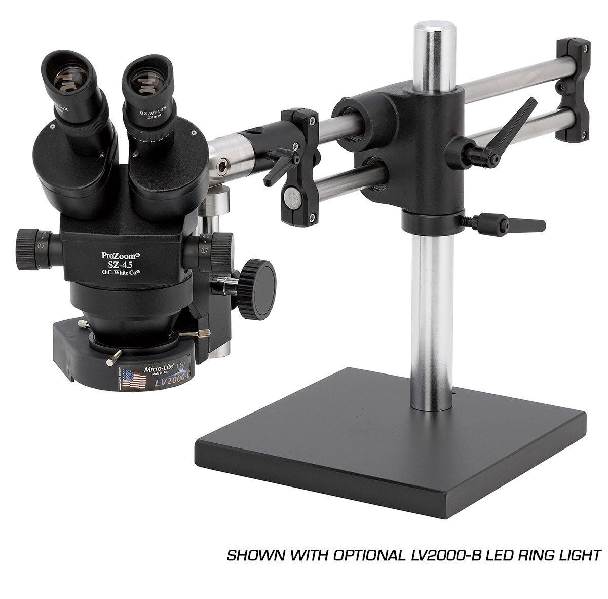 O.C. White TKSZ Prolite 4.5 Binocular Stereo Zoom Microscope, 10x Eyepieces, 3.5x-45x Magnification, 0.7x-4.5x Zoom Objective, 0.5x Auxiliary Objective, Ball-Bearing Base