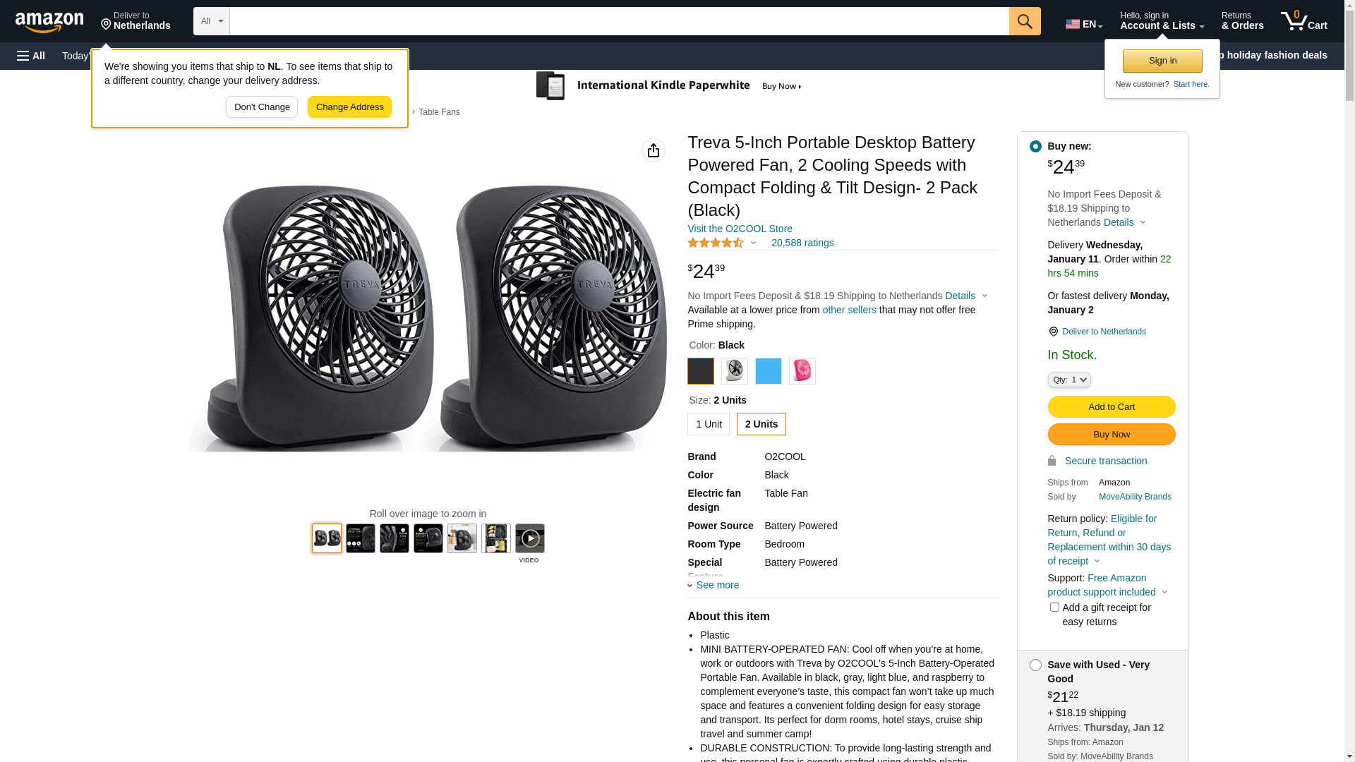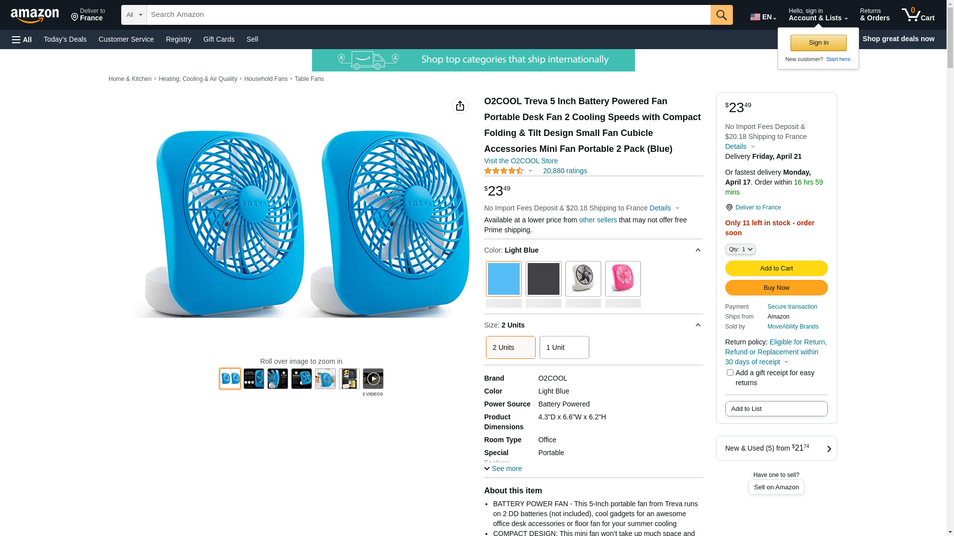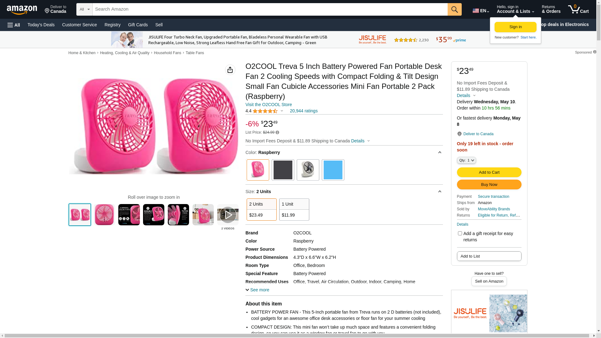 | Feature | "Mini battery-operated fan. Cool off when you're at home, work or outdoors with o2cool's 5-inch battery-operated portable fan. Available in black, green, gray, light blue, orange, purple and Raspberry to complement everyone's taste, this compact fan won't take up much space and features a convenient folding design for easy storage and transport" |