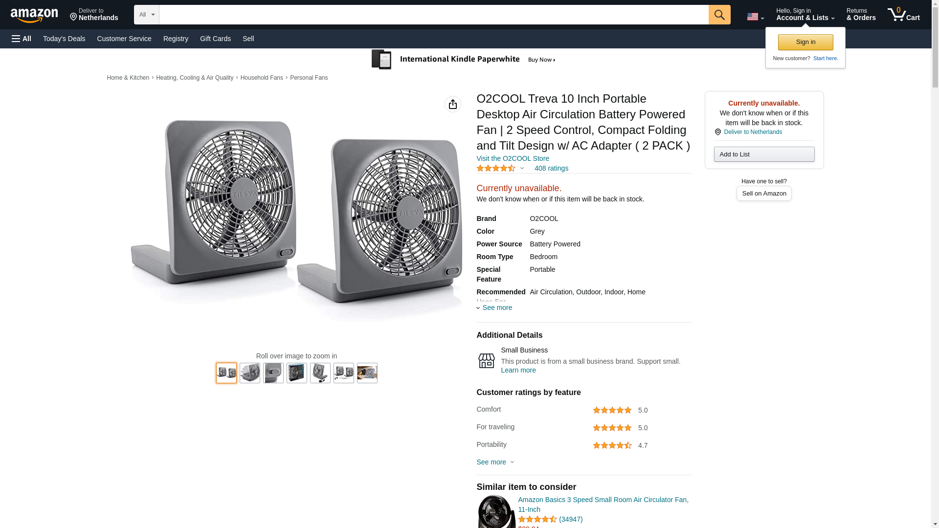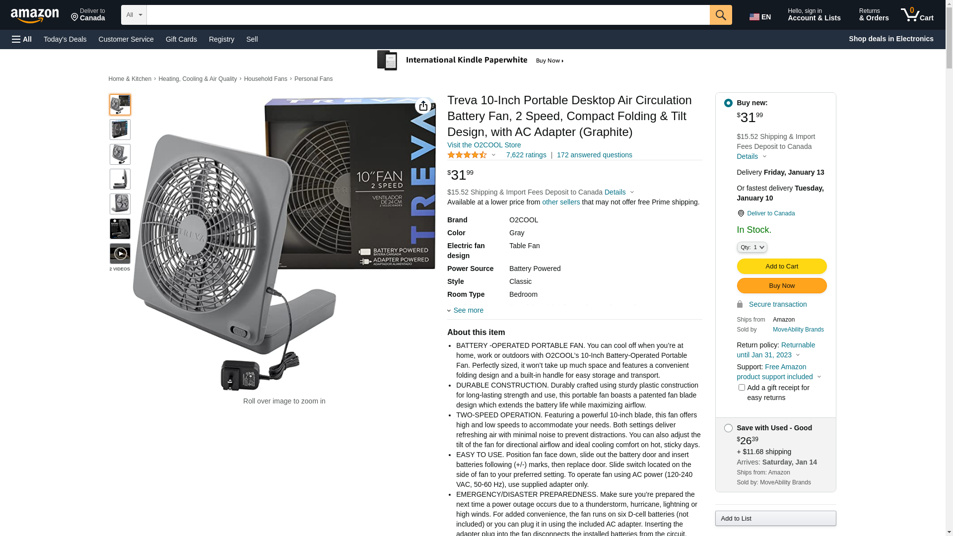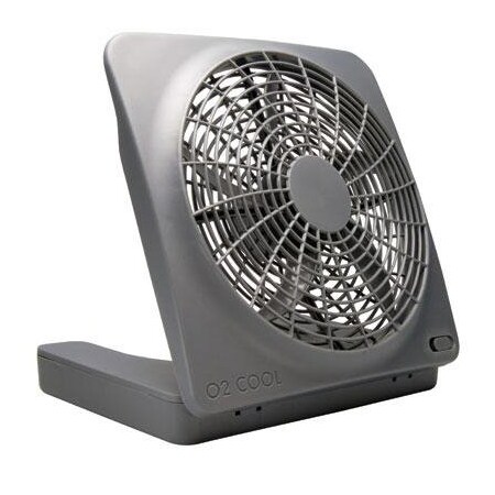 - BATTERY -OPERATED PORTABLE FAN. You can cool off when you’re at home, work or outdoors with O2COOL’s 10-Inch Battery-Operated Portable Fan. Perfectly sized, it won’t take up much space and features a convenient folding design and a built-in handle for easy storage and transport.