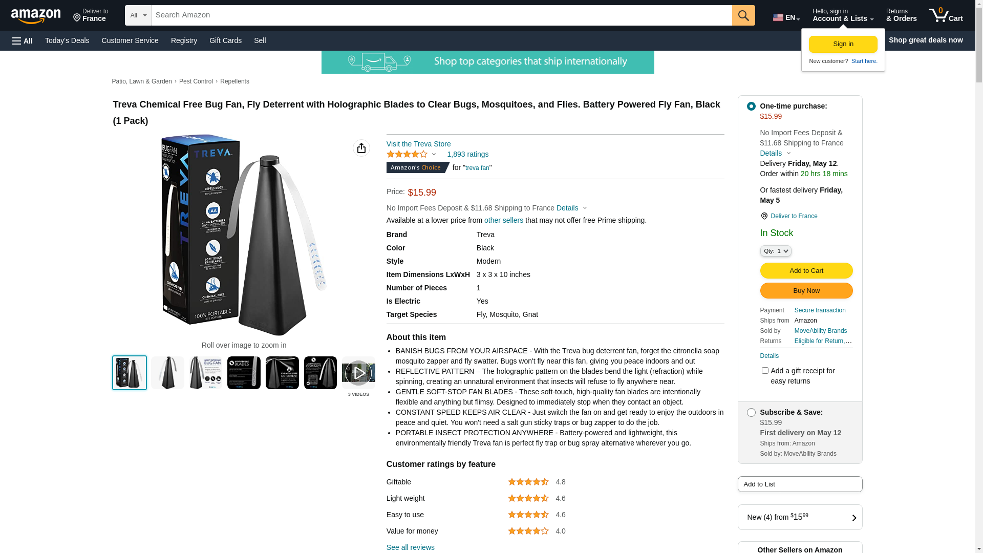 Treva FD15001 Bug Repellent Fan, 1 Pack, Black