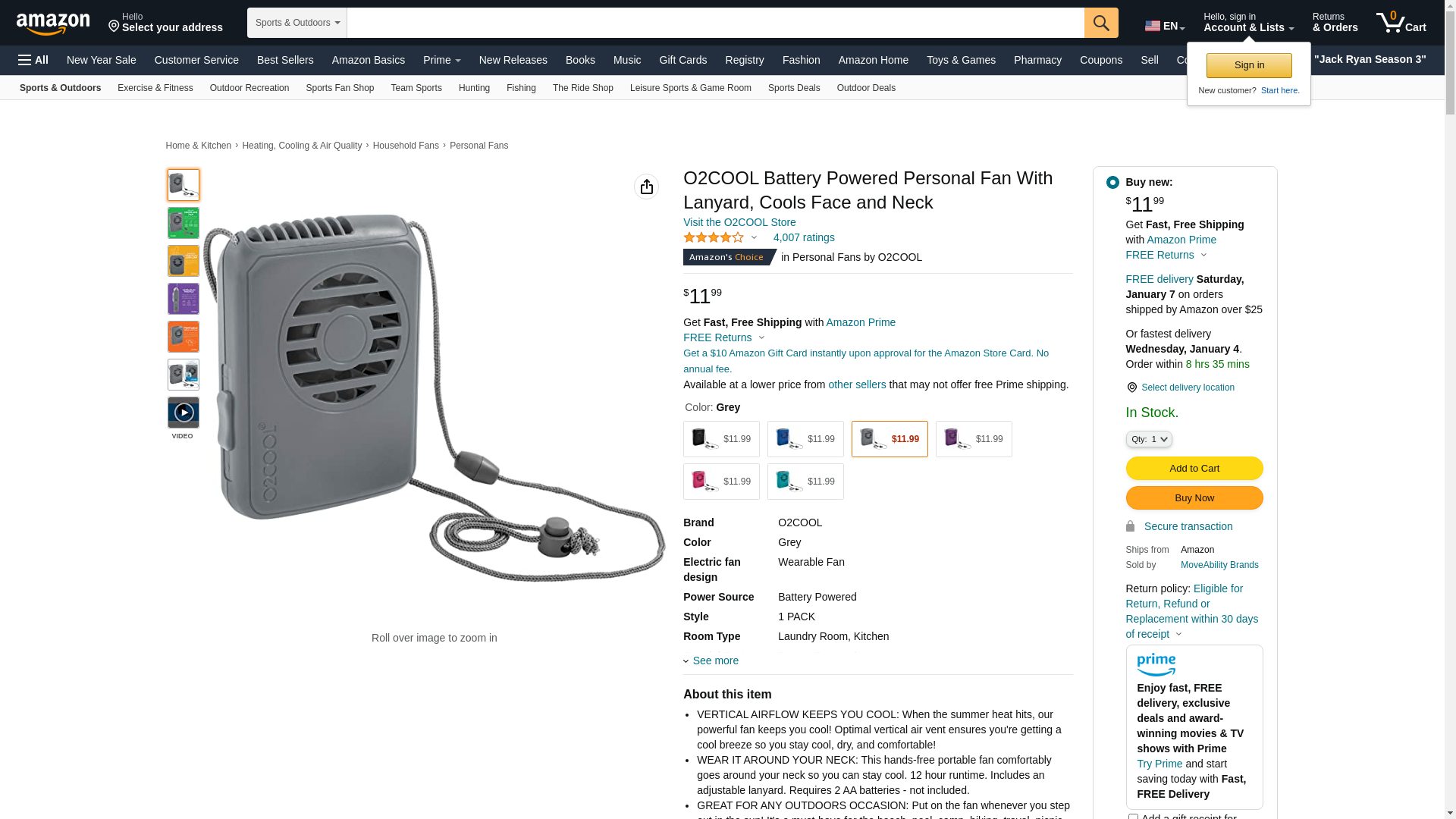 O2COOL Neck Personal Travel Battery Powered Cooling Fan, Single Pack (Gray)