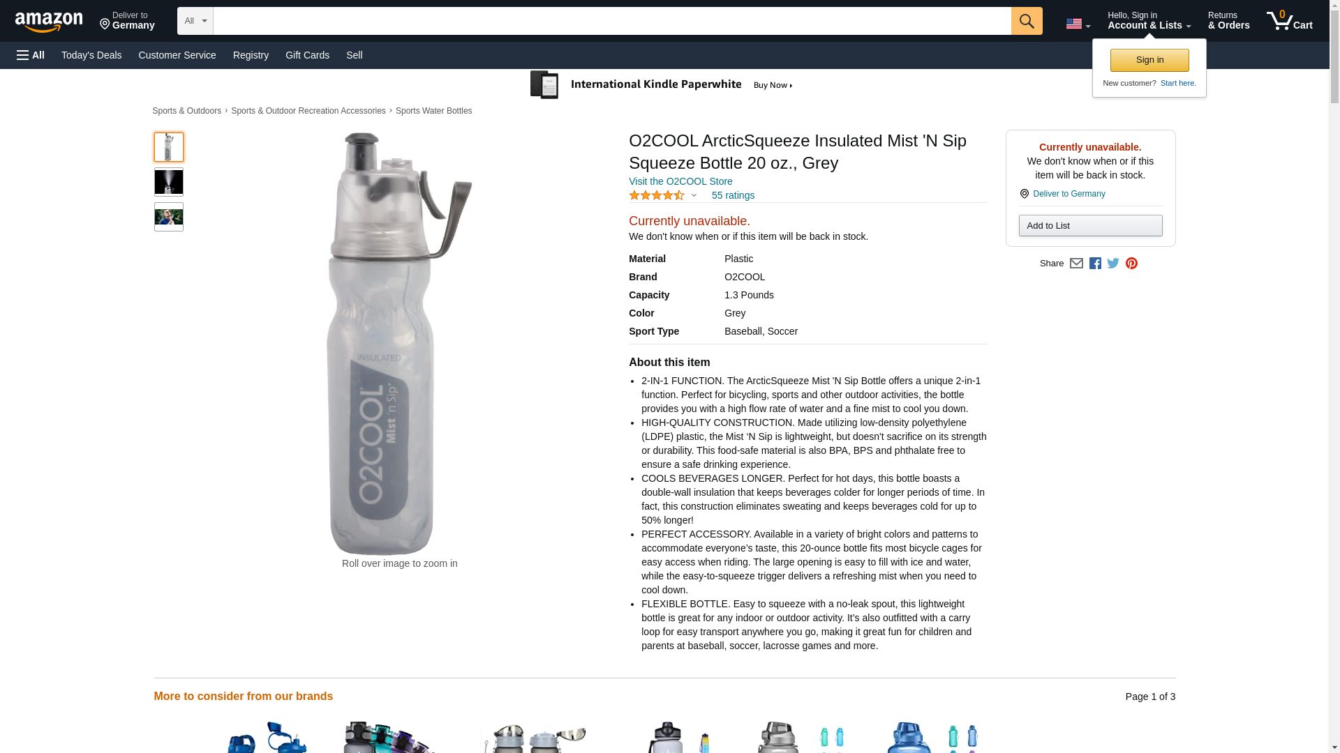 O2COOL® ArcticSqueeze® Insulated Mist 'N Sip® Squeeze Bottle 20 oz., Grey