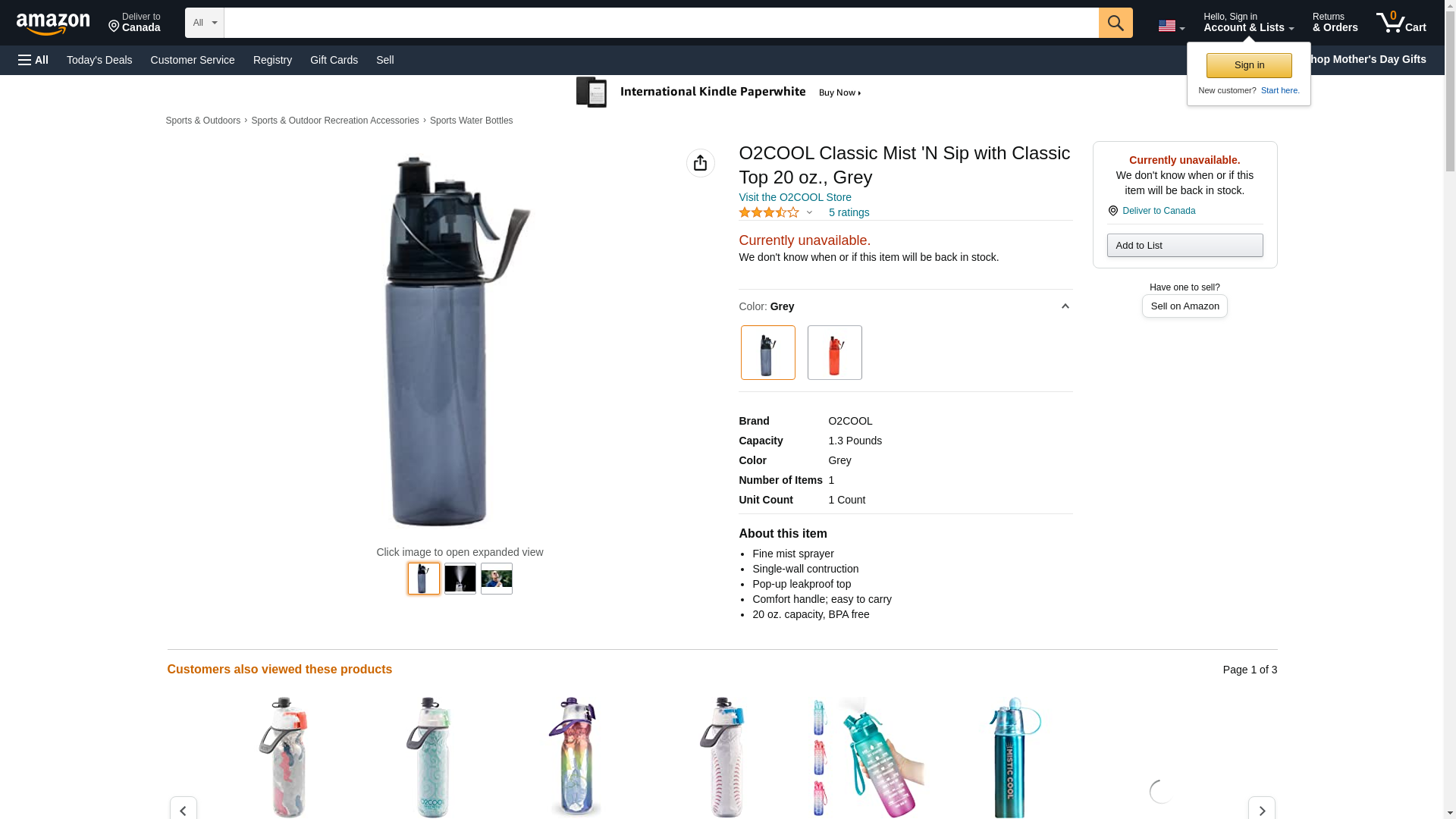 O2COOL® Classic Mist 'N Sip® with Classic Top 20 oz., Grey