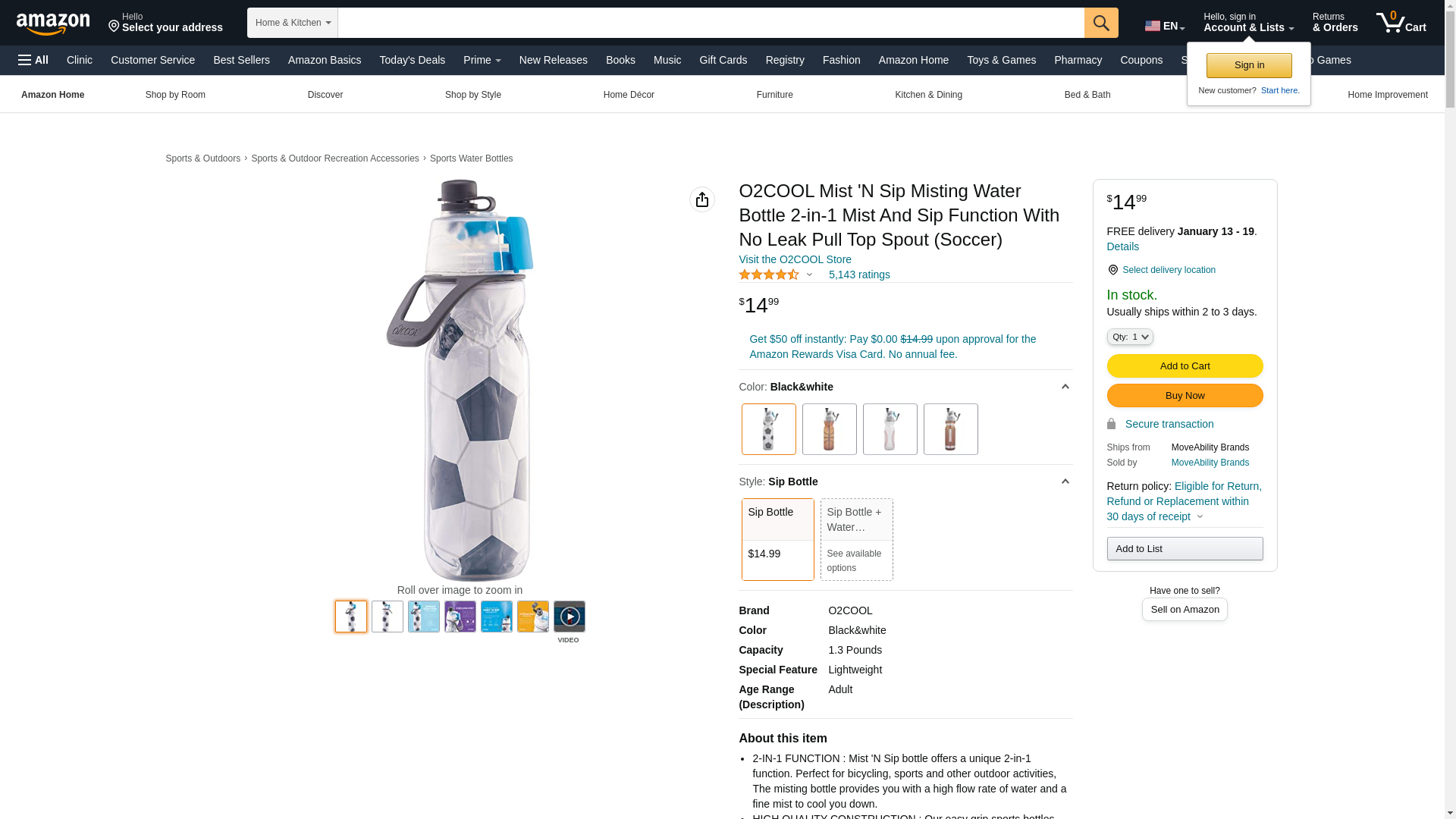Our signature misting water bottle! Mist to cool you on the outside n Sip to keep you hydrated on the inside. Double-wall construction eliminates sweating and keeps beverages cold up to 50% longer. Flexible, easy-to-squeeze bottle. Carry loop for easy transport. 20oz. BPA-free EVA bottle; ; Brand Name: O2Cool Sub Brand: Mist 'N Sip Theme: Artic Squeeze Product Type: Insulated 20 oz. Water Bottle Number in Package: 1 pk Color: Assorted