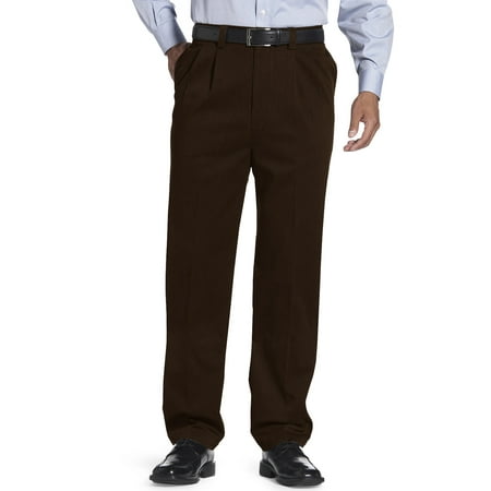 No-worry, no-hassle pleated style treated with stain-fighting technology and detailed with a waist-relaxer® inset that stretches up to four inches, waistband gripper, side pockets, back button-through welt pockets and belt loops. Wrinkle- and stain-resistant colorfast, water-repellent cotton. Machine wash. Imported.