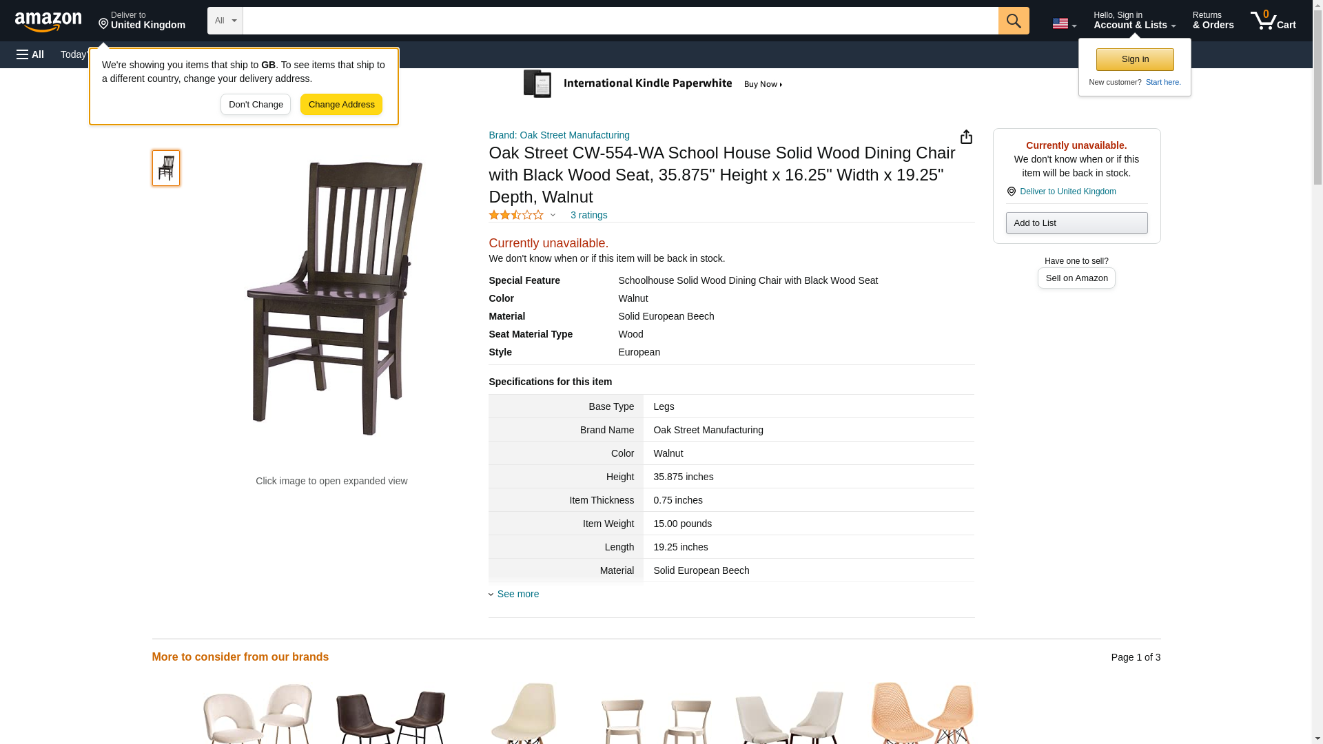 Oak Street CW-554-WA School House Solid Wood Dining Chair with Black Wood Seat, 35.875" Height x 16.25" Width x 19.25" Depth, Walnut