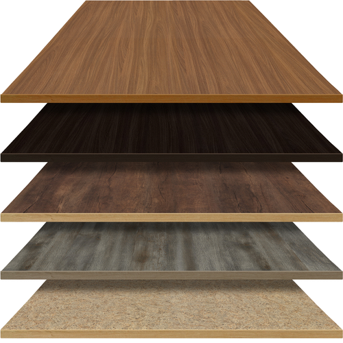 Table Top, square, 24" x 24", 1-1/4" thick, laminate surface, 3/8" wood overlay edge, industrial grade particle board, made in Iowa