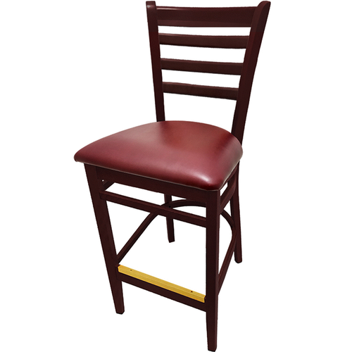 Oak Street Manufacturing WB101MH Solid Mahogany Wood Frame Ladderback Barstool with Mahogany Wood Seat, 18" Width x 17" Depth