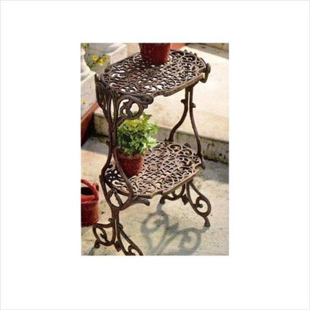 The Oakland Living 28-1/2 in. Metal 2-Level Plant Stand offers an intricate design with durable cast iron and an antique bronze powder coat finish. This stand has 2 levels for convenience and expanded capacity.