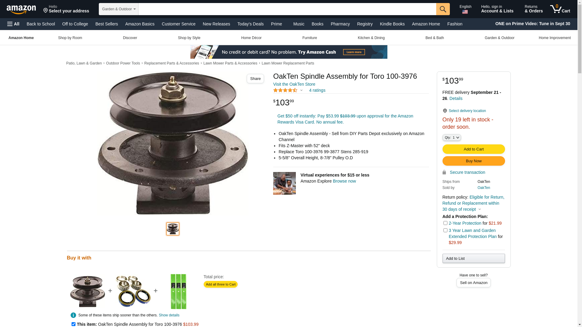 Stens 285-919 Stens Spindle Assembly Toro 100-3976 DetailsPack Size:eaQty / Unit:1 Specs Height5 5/8"Pulley Outer Diameter8 7/8"Packaging typeBranded boxIncludes blade bolt and cup washer